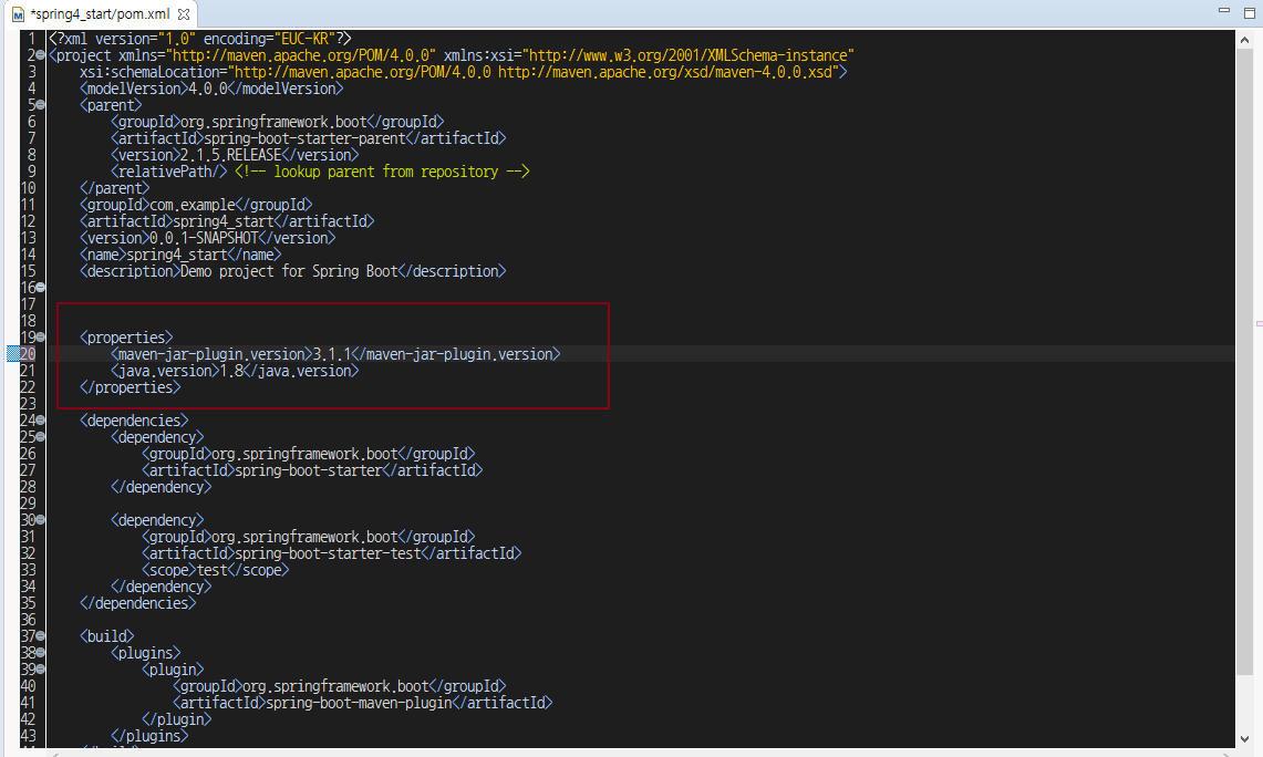 이건 이클립스 버그로 pom.xml에 메이븐을 다운그레이드 설정 후